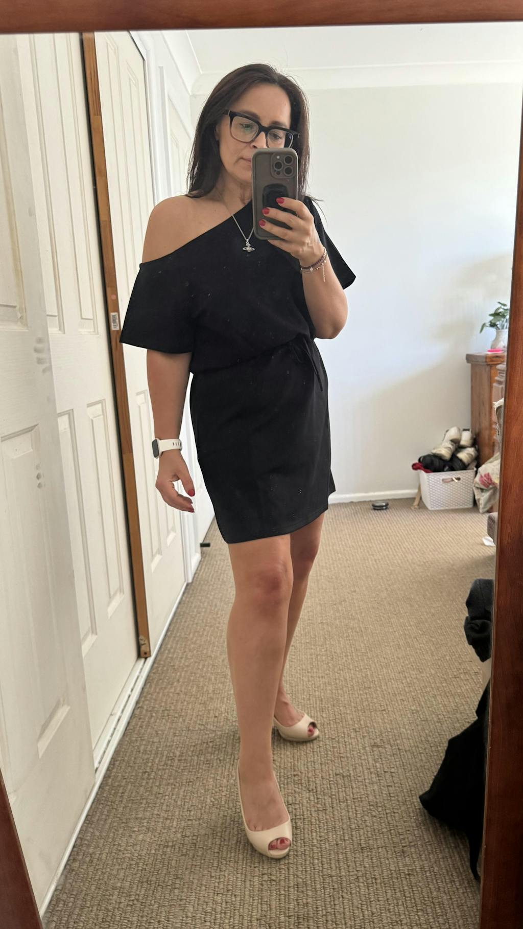 - Off-shoulder neckline
