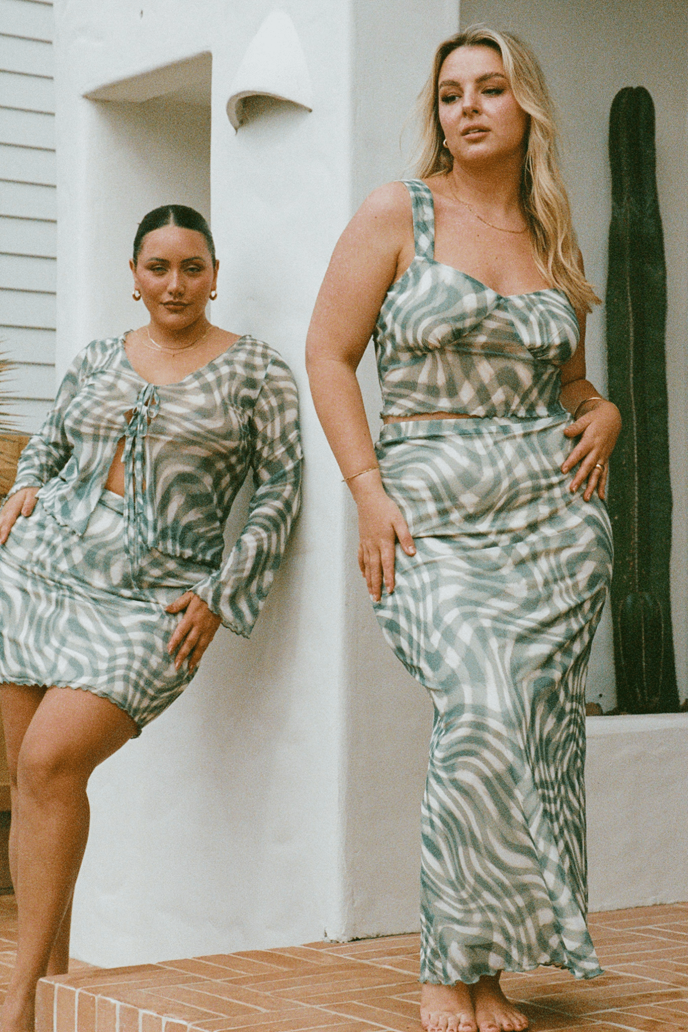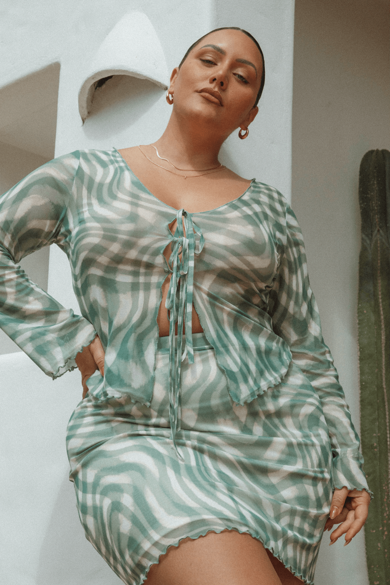 The perfect combo of covering up and showing skin all at once ✨ With stunning flared long sleeves and a plunging neckline with a tie chest feature, our Isla Top is giving hot gal vacay vibes. Pair her with a matching skirt, the choice is yours between our Sabela Mini & Lalita Maxi. This stretchy, vibrant & sultry style will be your fave of the summer.