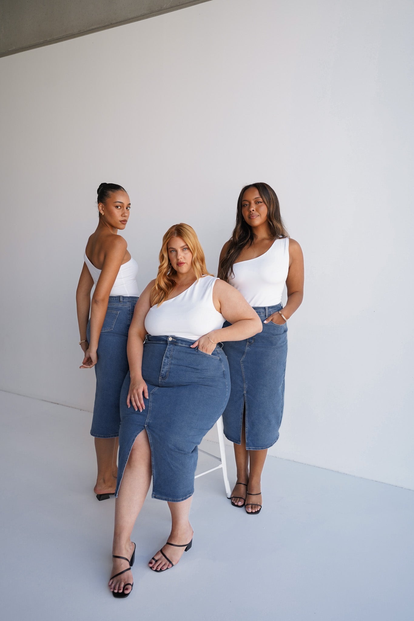 Made from our signature stretch denim you know and love our Hudson features a comfortable high waist fit and a mid-length skirt with a great amount of stretch and a perfectly placed leg split. Dress our Hudson Skirt down with your go-to slide or sneaker, or take her from day to night with a heeled boot and coat for a perfect winter night out vibe.