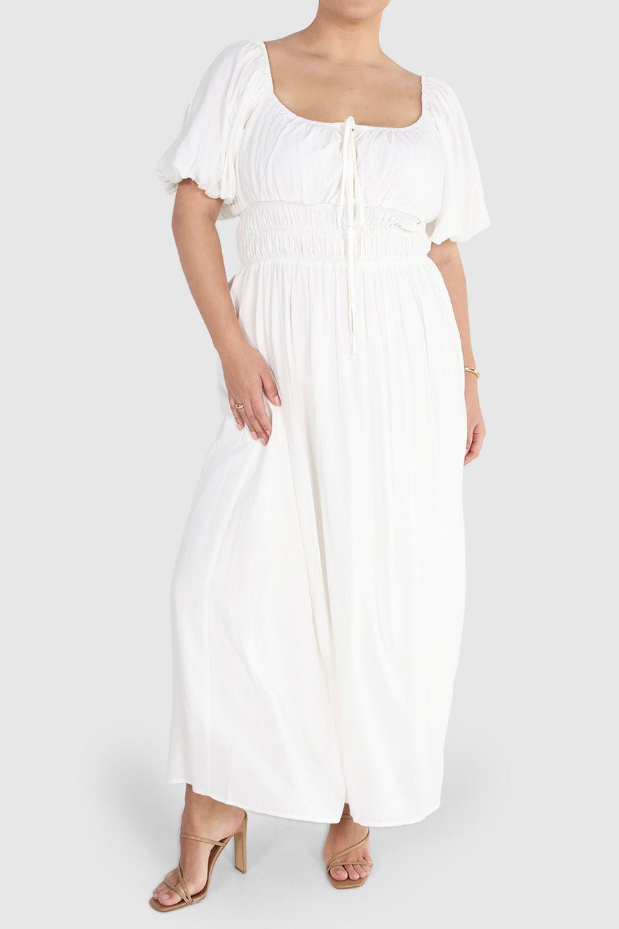 Meet the Luma Dress, the definition of effortless elegance. With soft shirring through the bodice and a lightweight, floaty skirt, she’s made for warm days into golden evenings. With the voluminous puff sleeves, elasticated neckline and faux tie, it keeps the look soft and feminine. Comfortable, lightweight and beautifully detailed, Luma is your new season favourite.