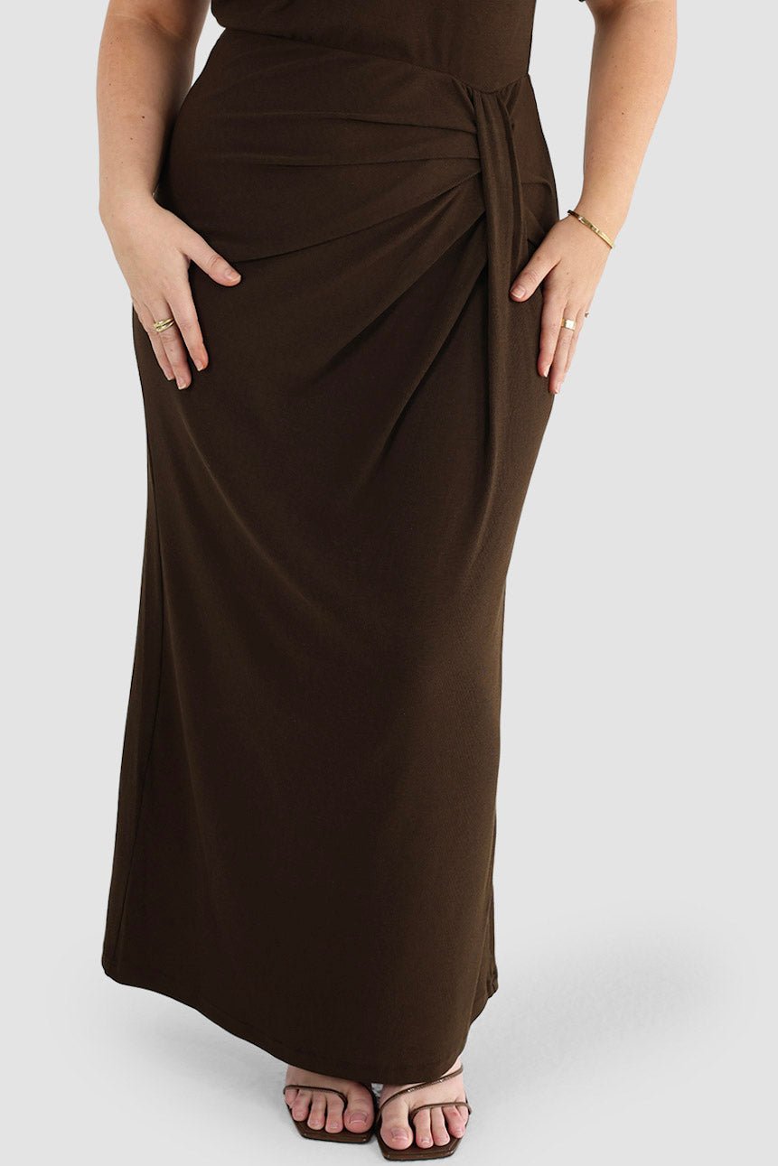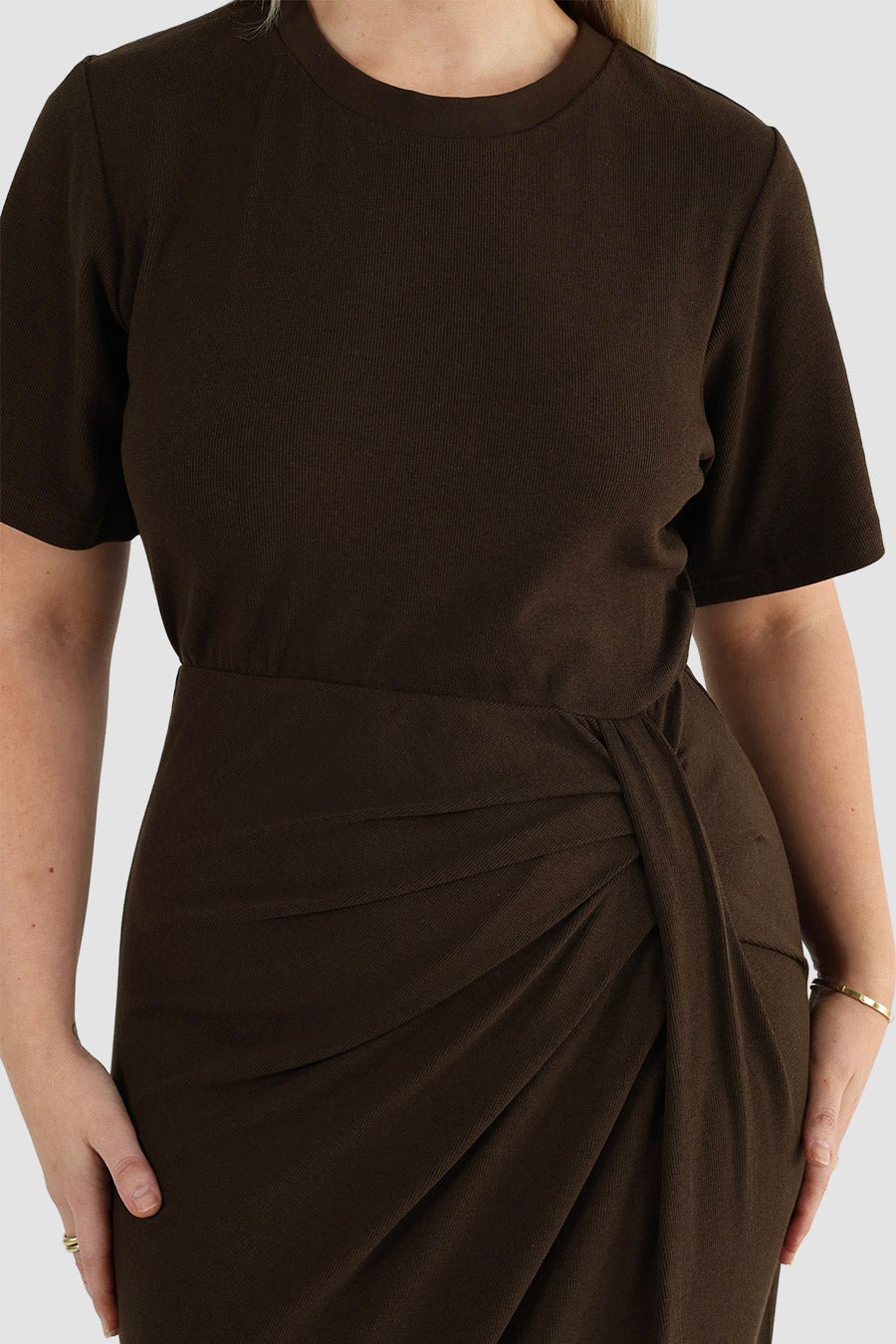 An elevated take on the everyday knit dress. The Marnie Rib Dress in Espresso is cut from a soft ribbed knit that moves with you, designed in a longline T-Shirt silhouette.