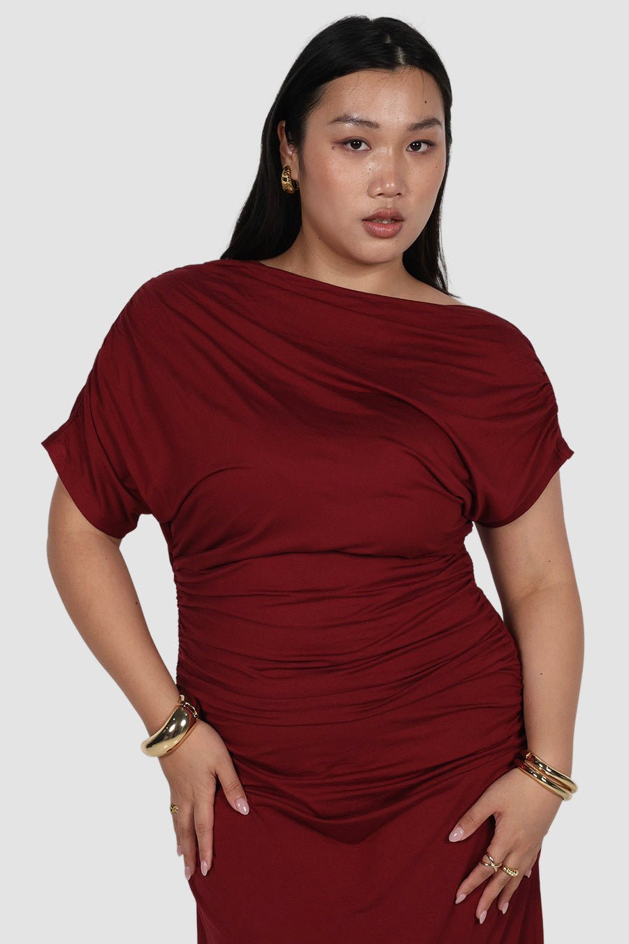Sloane is the dress you reach for when the invite calls for something a little special. Think slinky, sophisticated and designed to move with you. Crafted from our signature buttery fabric, she features a soft asymmetrical neckline that drapes effortlessly across the shoulder, with flattering ruching through the waist for shape. Sloane is sophisticated without feeling overdone making her perfect for weddings, events and every RSVP in between.