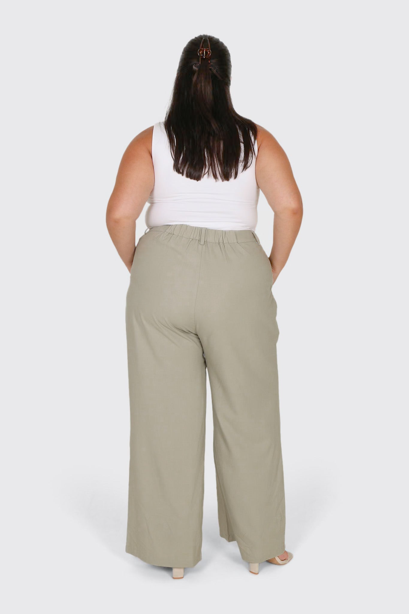 *Note: In this production run we've added an extra 4cm to the length of our Aire Pants. See below for model sizing and heights. Brittney wears her Arie Pants with slides for a more resort vibe and Kiara wears heels for a perfect length fit.