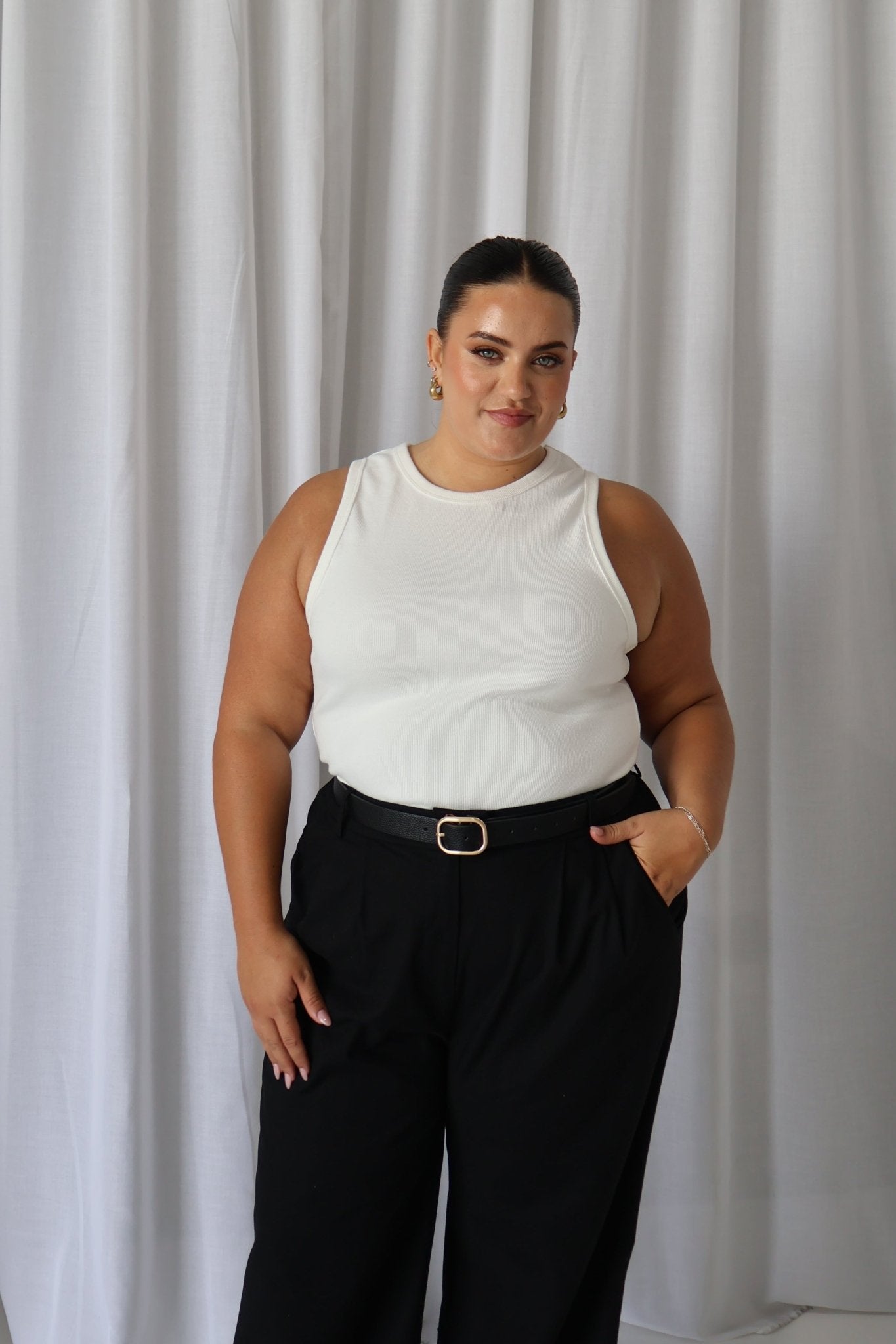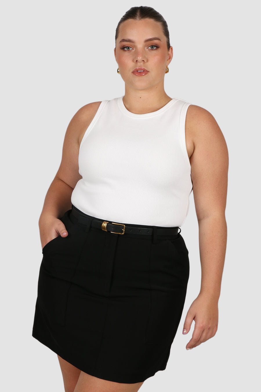 Our Malibu Top was one of our first best selling basics, so we have brought her back for spring! The perfect blend of stretch and structure - this thick luxe piece pairs perfectly with any bottoms you can dream of. Layer her with a cute button up overshirt, or pair with your Jagger denim shorts and slides for a slay summer look.