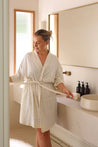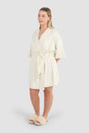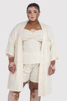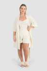 Meet the Garden Lullaby Sleep Robe, the soft, lightweight layer you’ll reach for from early mornings to cosy evenings. Crafted from a breathable light knit weave fabric, it drapes with an effortless flow and feels soft against the skin. The relaxed silhouette features wide sleeves and a wrap front that secures with a functional tie, allowing you to adjust the fit with ease. The robe is the perfect throw-on for lounging, layering or pairing with the matching tank and shorts.