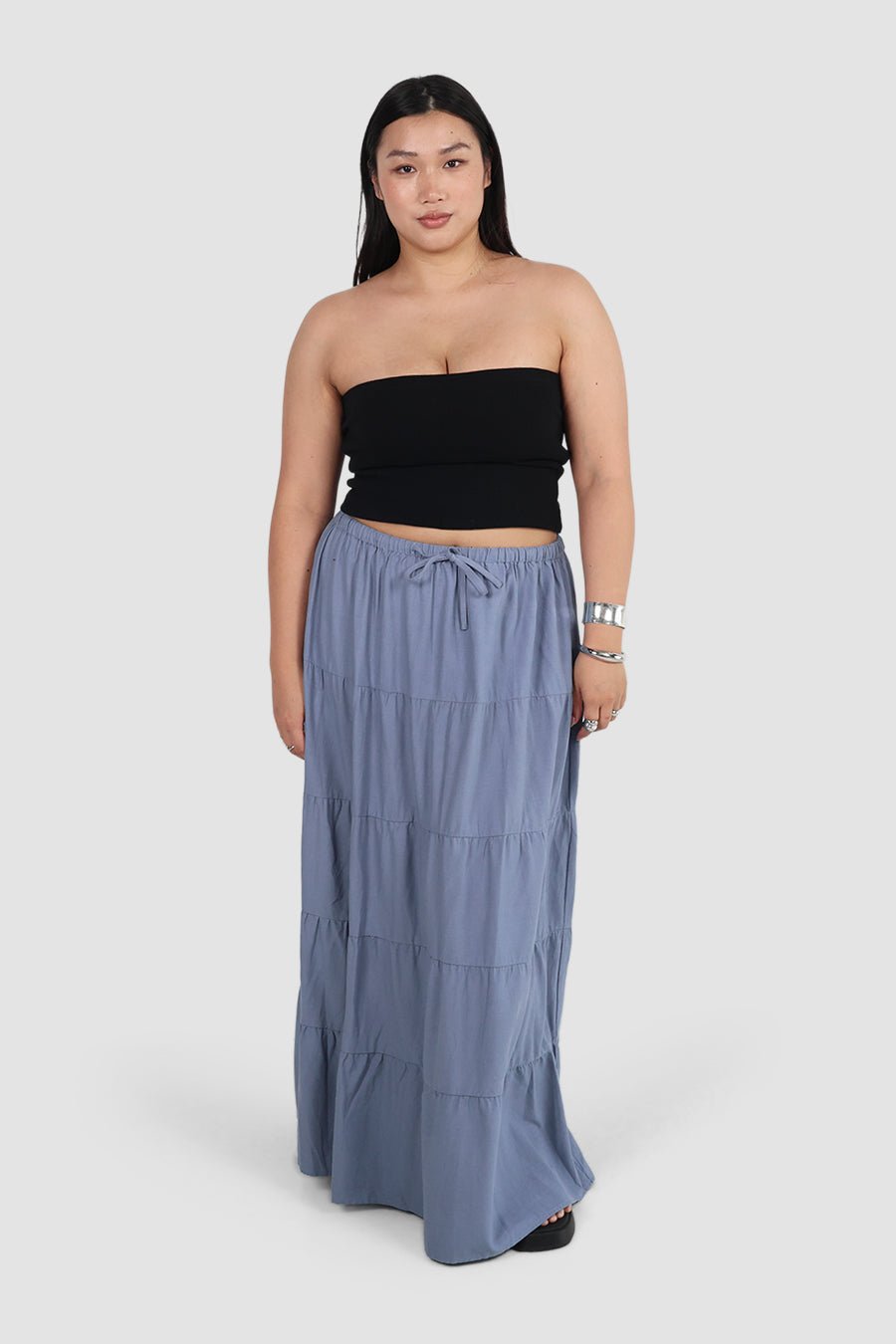 ZYLA TIERED MAXI SKIRT BLUE