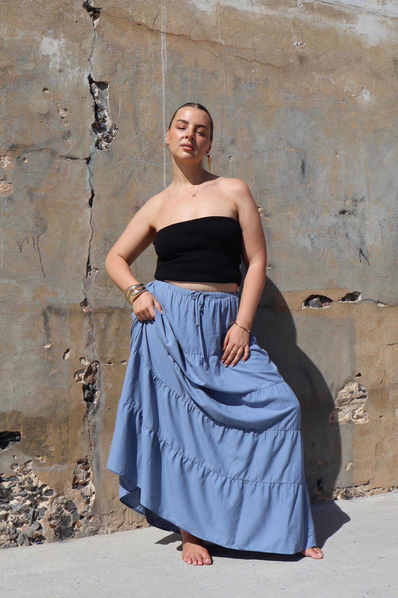 - Maxi skirt, where it sits around your foot/ankle will just depend on your height